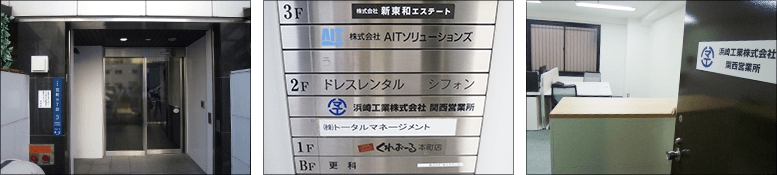 浜崎工業株式会社は事業拡大に伴い、関西エリアの営業拠点として関西営業所を開設。2014年7月1日(火)より営業を開始致しました。今回の開設により、同エリアの既存クライアントさまのニーズ対応を強化することはもちろん、新規クライアントの獲得を目指していきます。より一層皆さまのお役に立てるよう、社員一同業務に努めて参りますので、今後ともご支援を頂きますようお願い申し上げます。